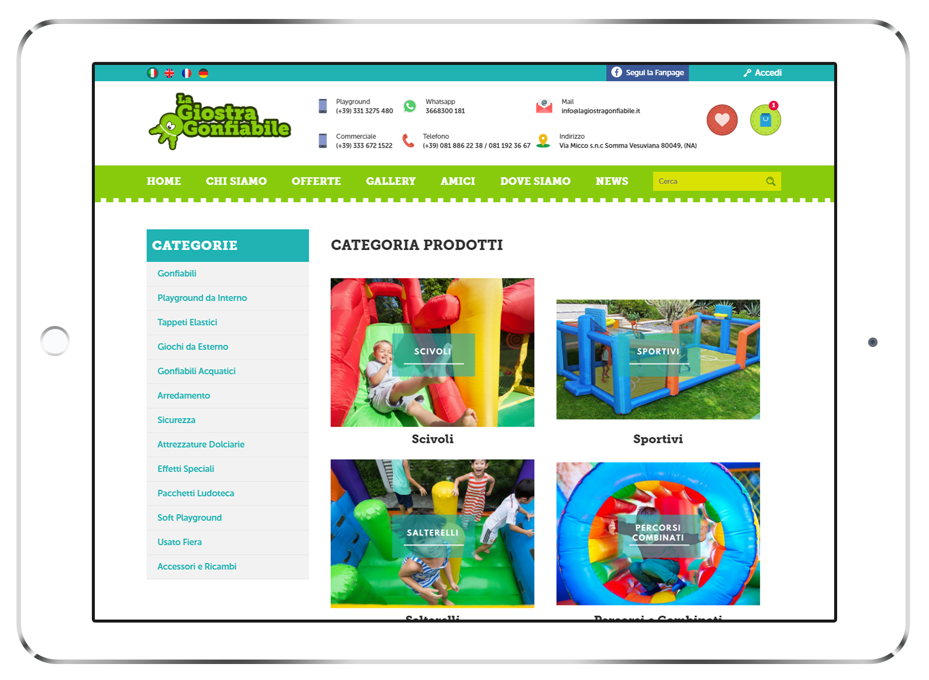 Una progettualità lungimirante da parte della 3d0 ha fornito a La Giostra Gonfiabile una piattaforma web che ormai da sei anni si rinnova costantemente, sia nella grafica che nelle funzionalità, per offrire sempre ai propri utenti informazioni aggiornate, attrezzature innovative, le migliori offerte provenienti dal mercato mondiale: in sintesi, un’esperienza interattiva immediata ed efficace.